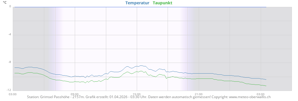 2157 m.ü.M. | -10.2 °C | 93 % | N/A 0 km/h | 0.0 mm | 01. Apr. 2026 02:20